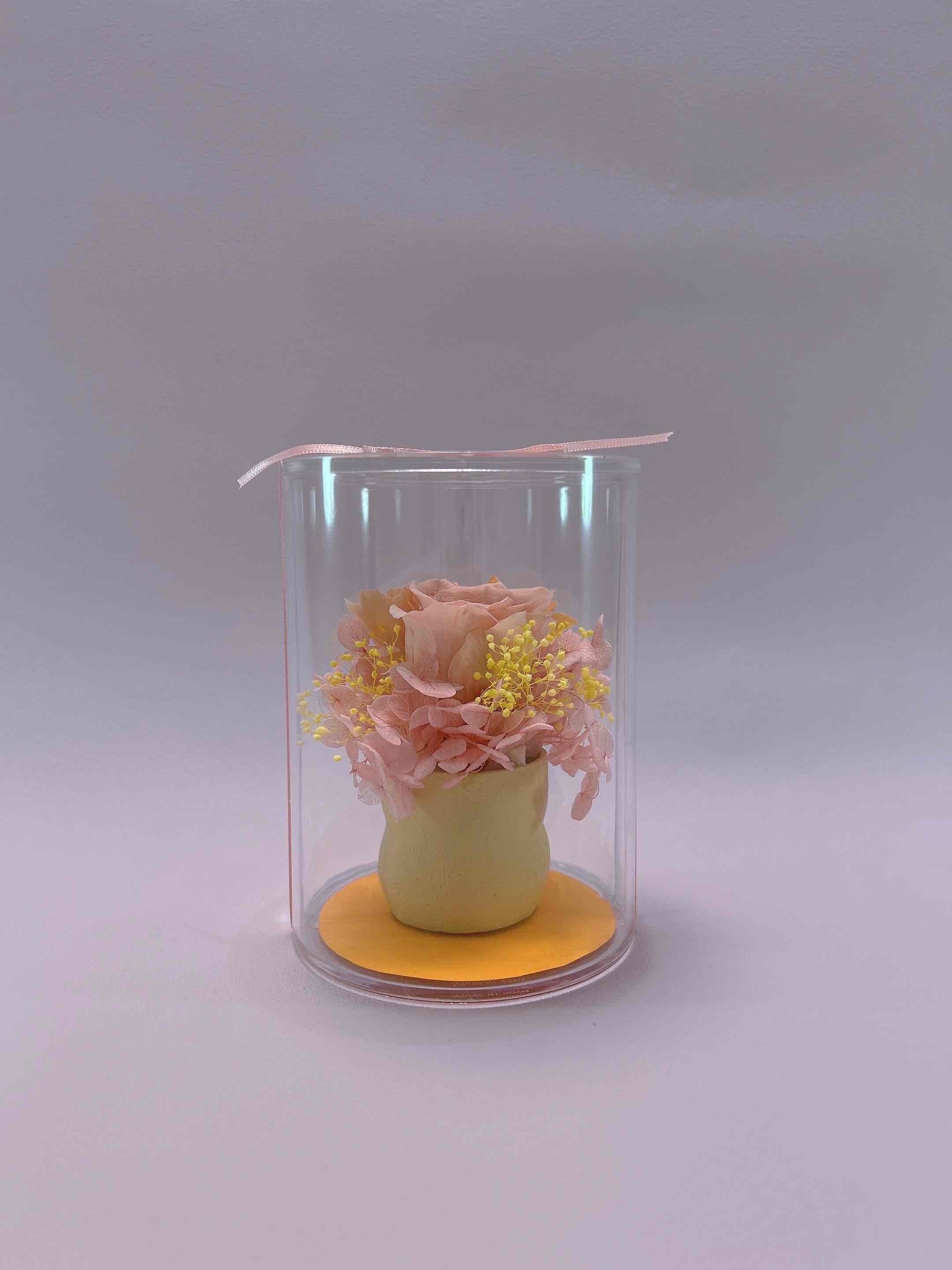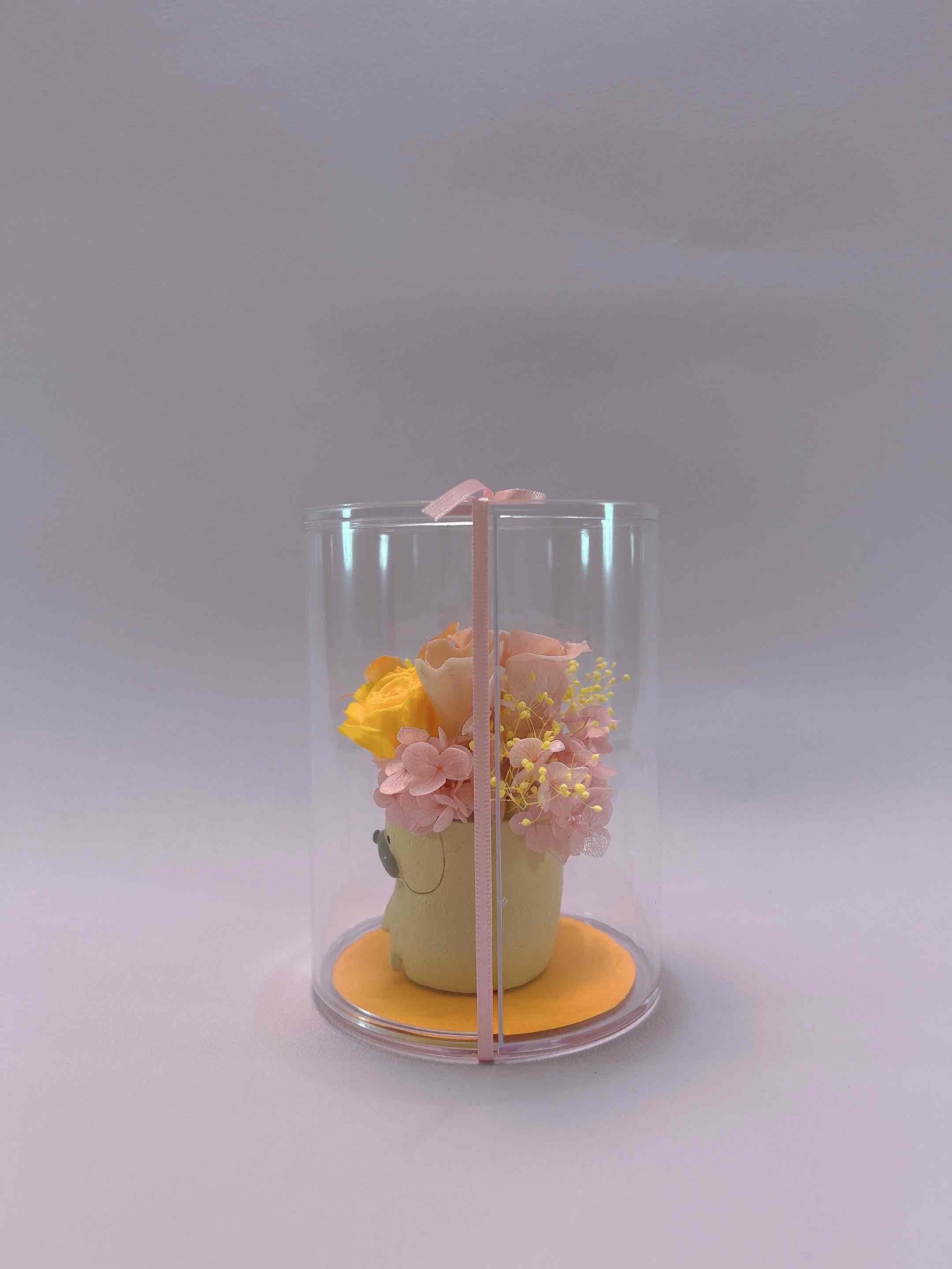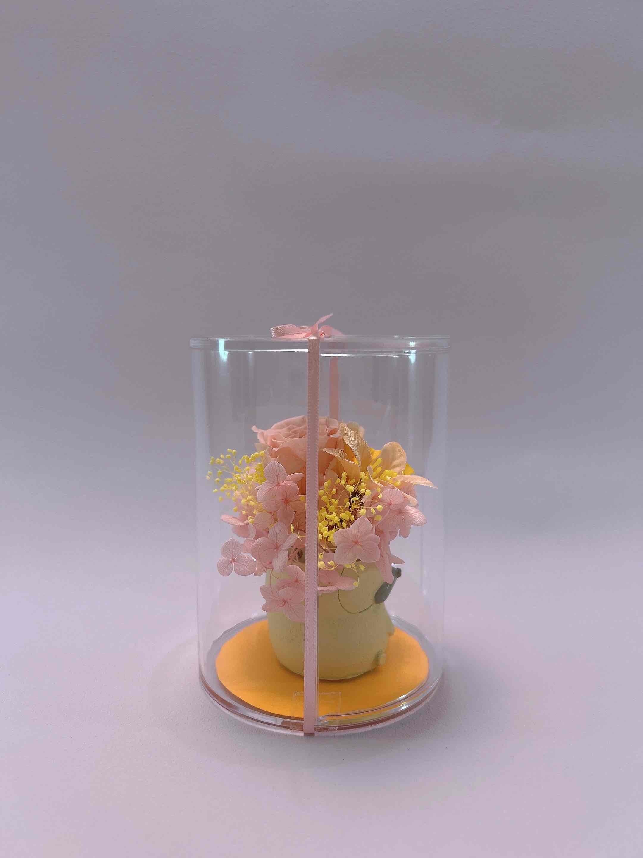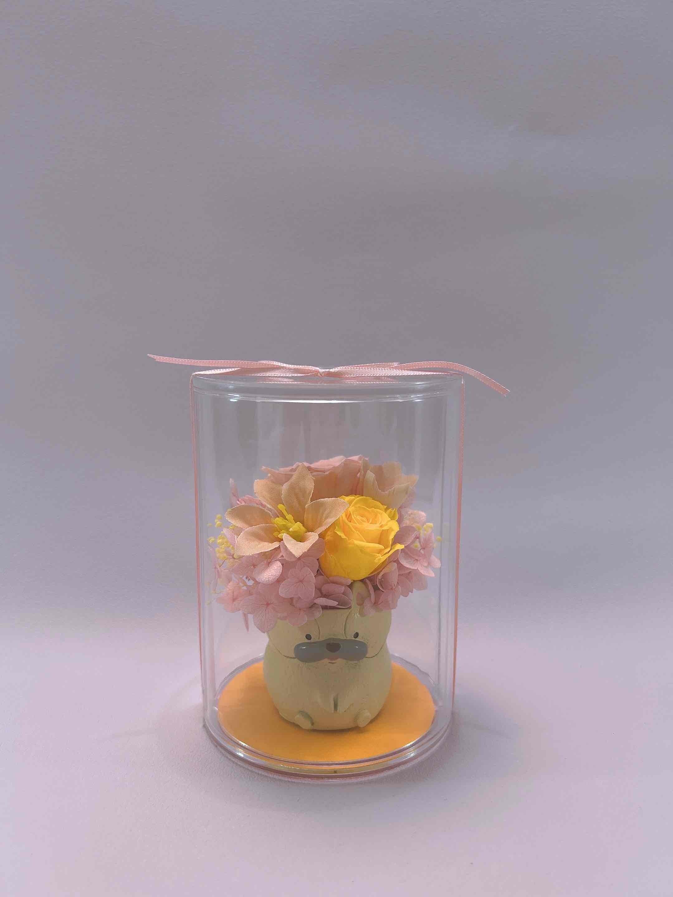 可愛らしい動物がプリザーブドフラワーを載せたアレンジメントシリーズ。オレンジ色を纏ったフレンチブルドッグが心温まる雰囲気を演出します。手のひらサイズでお部屋のインテリアに最適なアイテムです。